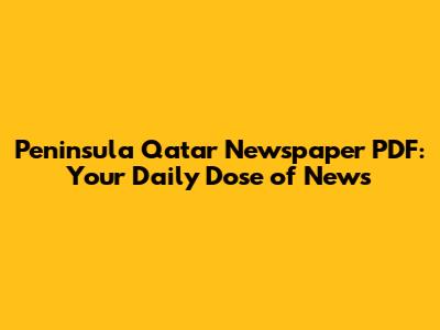 Peninsula Qatar Newspaper PDF: Your Daily Dose Of News