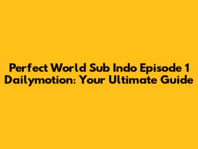 So, you're on the hunt to watch Perfect World with Indonesian subtitles, specifically episode 1, and you're hoping to find it on Dailymotion. Here’s the deal: Dailymotion can be a bit tricky. Copyright issues often lead to episodes being taken down. But don't worry, there are some strategies you can use to increase your chances of finding it.