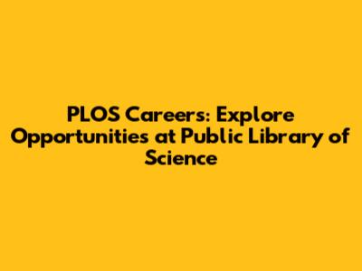 PLOS Careers: Explore Opportunities At Public Library Of Science
