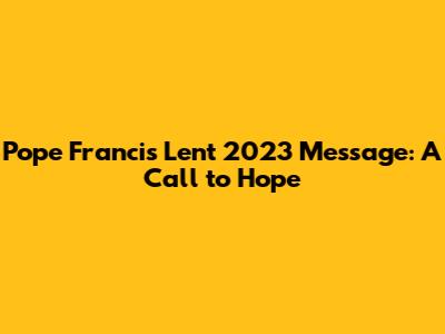 Pope Francis' Lent 2023 Message: A Call To Hope