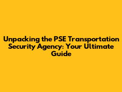 PSE Transportation Security Agency: A Comprehensive Guide