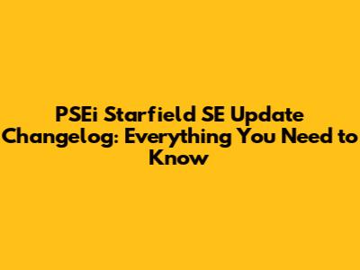 PSEi Starfield SE: Updates, Changes, & What You Need To Know