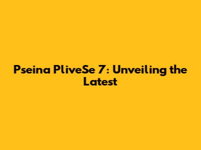 Pseina PliveSe 7: Unveiling The Latest