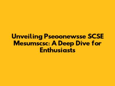 Unveiling Pseoonewsse SCSE Mesumscsc: A Deep Dive for Enthusiasts