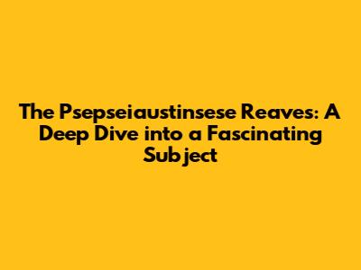 The Psepseiaustinsese Reaves: A Deep Dive into a Fascinating Subject