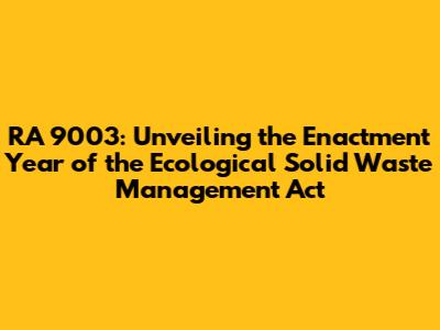 RA 9003: When Was The Ecological Solid Waste Act Enacted?