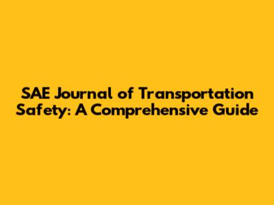 SAE Journal Of Transportation Safety: All You Need To Know
