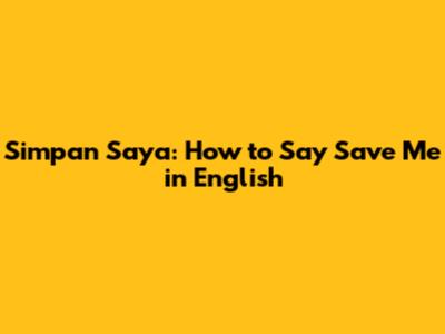 Simpan Saya: How To Say Save Me In English