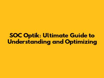 SOC Optik: Ultimate Guide To Understanding And Optimizing