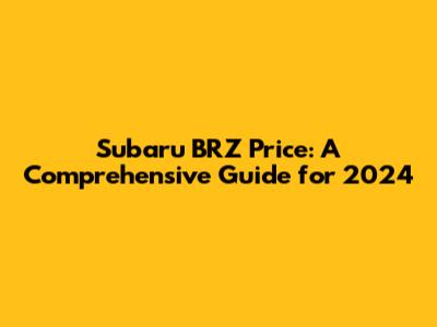 Subaru BRZ Price: A Comprehensive Guide For 2024