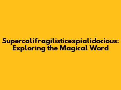 Supercalifragilisticexpialidocious: True Meaning Revealed!