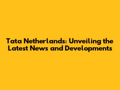 Tata Netherlands: Latest Updates & Insights