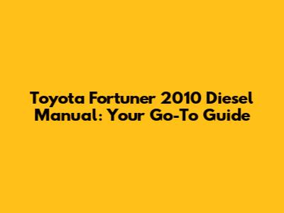 Toyota Fortuner 2010 Diesel Manual: Ultimate Guide