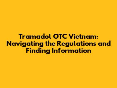 Alright, so where do you find the most accurate and reliable information about tramadol and its availability in Vietnam? Here are a few great resources: