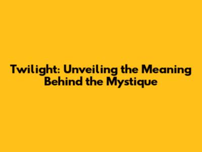 Twilight: Unveiling The Meaning Behind The Mystique