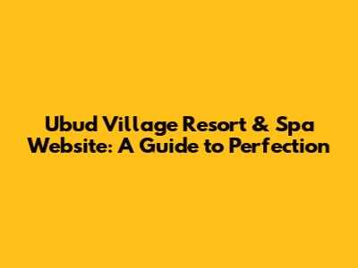 Ubud Village Resort & Spa Website: A Guide To Perfection