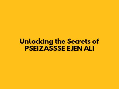 Unlocking The Secrets Of PSEIZASSSE EJEN ALI