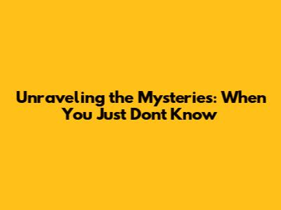 Unraveling The Mysteries: When You Just Don't Know