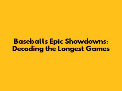 Unveiling Baseball's Epic: The Longest Games Ever
