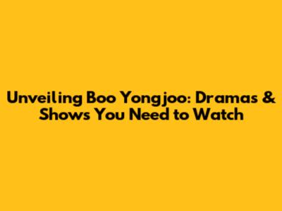 Unveiling Boo Yongjoo: Dramas & Shows You Need To Watch