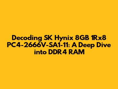 Hey tech enthusiasts! Today, we're diving deep into the world of RAM (Random Access Memory), specifically the SK Hynix 8GB 1Rx8 PC4-2666V-SA1-11 module. If you've ever looked at your computer's specs or considered upgrading your memory, you've likely encountered a string of letters and numbers that might seem like a foreign language. But fear not, we're here to break down this code and explain what it all means. This comprehensive guide will cover everything you need to know about this particular RAM module, from its technical specifications to its performance characteristics and what makes it tick. So, let's get started!