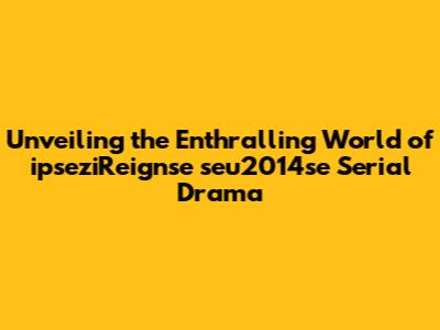 Hey guys, have you ever stumbled upon a show that just grabs you from the get-go? Well, let me tell you about ipseziReignse seu2014se, a serial drama that's been making waves. This is more than just a show; it's an experience. We're diving deep into what makes this drama tick, exploring its captivating story, and why it's become a must-watch for so many.