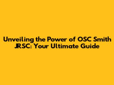 Unveiling The Power Of OSC Smith JRSC: Your Ultimate Guide