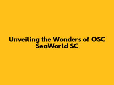 Unveiling The Wonders Of OSC SeaWorld SC
