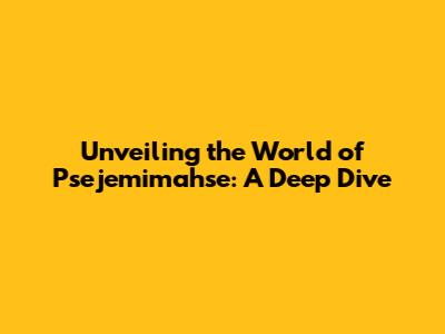 Unveiling The World Of Psejemimahse: A Deep Dive