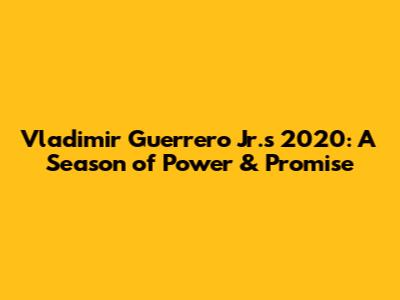 Vlad Guerrero Jr.'s 2020: A Season Of Power & Promise