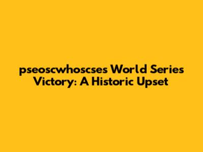 World Series Upset: Pseoscwhoscse's Unbelievable Win!