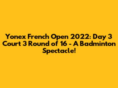 Hey badminton fans! Get ready to dive into the electrifying atmosphere of the Yonex French Open 2022! We're talking about the Day 3 matches, specifically the nail-biting Round of 16 showdowns that unfolded on Court 3. This was where the underdogs often tried to make their mark, where strategies were tested, and where the crowd roared with every powerful smash and delicate drop shot. Let's break down the intense action, the stunning upsets, and the unforgettable moments that defined the day on Court 3. This court witnessed some truly remarkable displays of skill, resilience, and sheer determination. The players battled it out, leaving everything on the court in pursuit of a coveted spot in the next round. It wasn't just about winning; it was about the spirit of the game, the passion, and the unwavering dedication of these incredible athletes. From the opening serve to the final point, the atmosphere was electric, with every rally igniting the crowd's enthusiasm. Court 3 offered a unique perspective on the tournament, showcasing the grit and grind of the sport. It became a theater of dreams, where aspirations clashed, and champions were forged. The matches held a special intensity, a palpable sense of urgency that comes with being on the cusp of a breakthrough. It was a day of high drama, unexpected twists, and unforgettable rallies. The players' commitment to excellence and their unrelenting drive to succeed served as an inspiration to fans and aspiring badminton players around the world. Every point was hard-fought, every victory earned. So, let's relive the excitement, the suspense, and the unforgettable moments of Day 3, Round of 16 on Court 3 at the Yonex French Open 2022! What an incredible day it was, showcasing the very best of badminton! The competition was fierce, the skills were impressive, and the drama was non-stop. We'll explore the key matches, the standout performances, and the overall impact of Court 3 on this thrilling tournament.