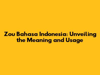 Zou Bahasa Indonesia: A Comprehensive Guide